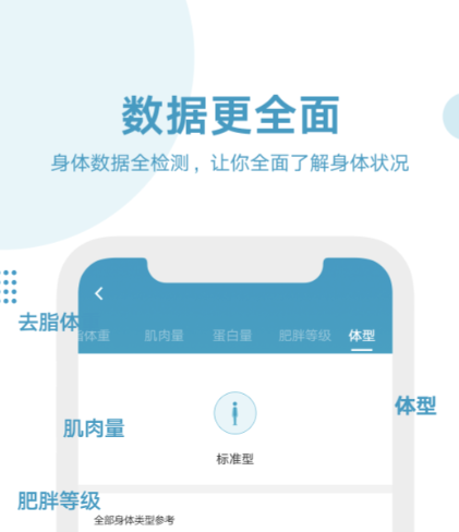 通过不同的项目给你带来全面的身体数据分析,从而让你可以合理的管理自己的体重,体脂率还有蛋白率等,这样就可以帮助大家全面的而分析健康数据。