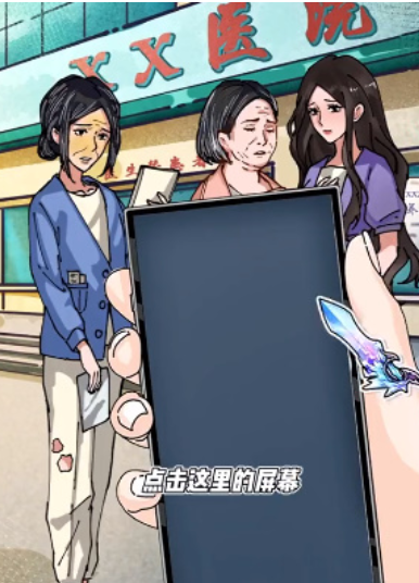 在右边的丈母娘那里,你可以发现以下线索:手中有她老伴的照片,说明她很思念已经去世的老伴。手上拿着一个药品袋,说明她也有一些病痛需要用药。背后有一个养老院广告,说明她可能想去养老院安度晚年。如果你上滑她裤子口袋,你会发现一把钥匙,说明她还有自己的房子。除此之外,你还可以看到妻子手中拿着一张诊断书,说明妻子也有一些健康问题。