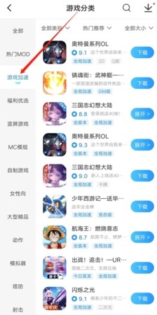 3.在分类页面的左侧功能栏中,我们可以看到“游戏加速”功能;