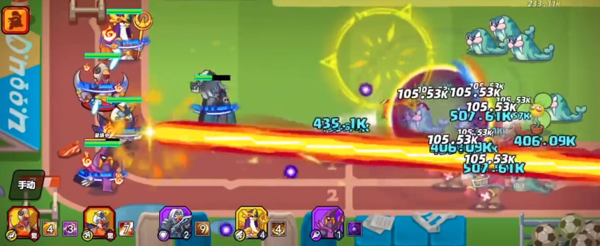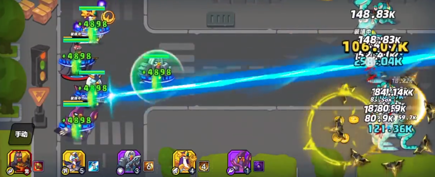 在画风这块,它则采用了一种简洁明了的2D动画风格,你可以看到满屏赏心悦目的大数字跳动,同时代表了治疗与进攻的各种光线也会接连充斥你的屏幕,在视觉呈现上会给人极为舒适的体验。