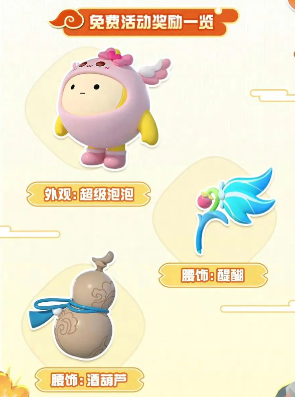 获得活动中的梦幻币,就可以获得非常可爱的粉色天使造型的【超级泡泡】皮肤了,这里一共是需要玩家们获得200个梦幻币才可以领取最终奖励哦,同时还更新了两款皮肤【骨精灵】【剑侠客】;