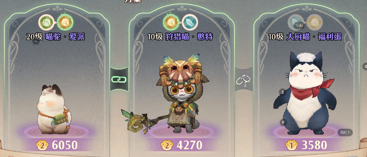 这里推荐大家直接选择前期最容易获取的【喵驼·爱派】【大厨喵·福利蛋】,这两个猫灵的获取难度非常的低,而且开局就会给大家免费赠送一个本体,对于后期也比较好升星的;而最后一个猫灵的选择,小编个人建议是选一些增加治疗量的,或者有团体收益的!
