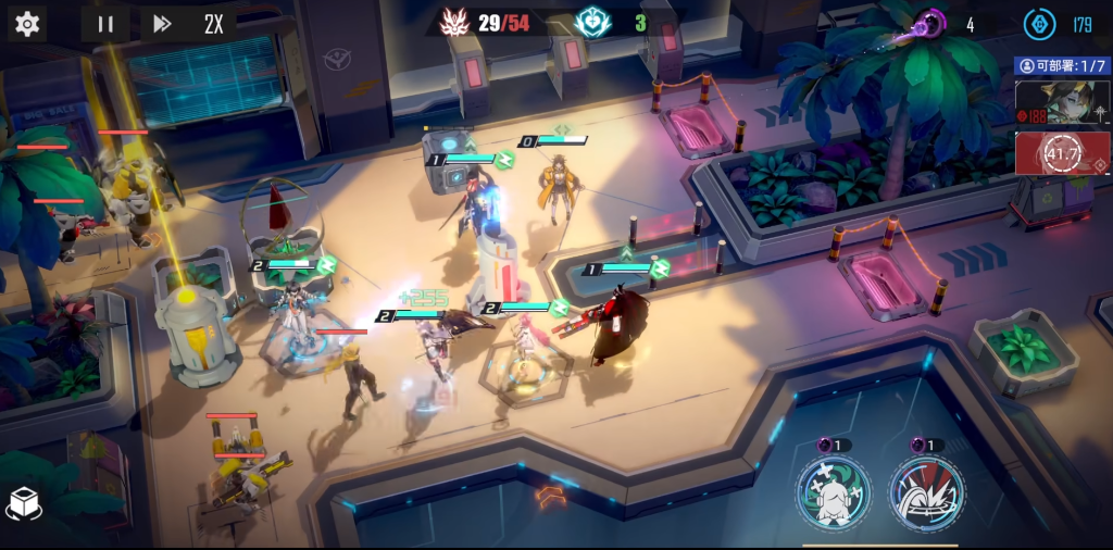 除了战斗之外在游戏中还有御宅的设定,除了战斗之外,还可以帮助这些角色装扮宿舍,能让玩家感受到游戏中不只有战斗,还有很多生活设定,整体设定使用的是塔防玩法,而且在这个基础上加入了逆塔防对战模式,玩家可以在游戏中体验到丰富的战斗策略,而且角色在游戏过程中也会有精美的动态效果呈现。