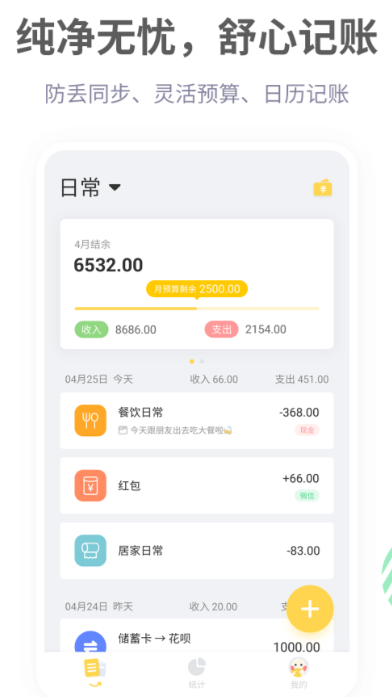 大家如果担心自己的不能控制花销,可以在此平台中设置预算,通过平台提醒控制花销。大家可以将其他软件的数据导入该软件中,对于整合账目信息和数据迁移更快速。此外,软件还提供日历提醒,及时提醒还款。软件中大家还可以对财务管理、预算等设置密码,个人隐私保护。
