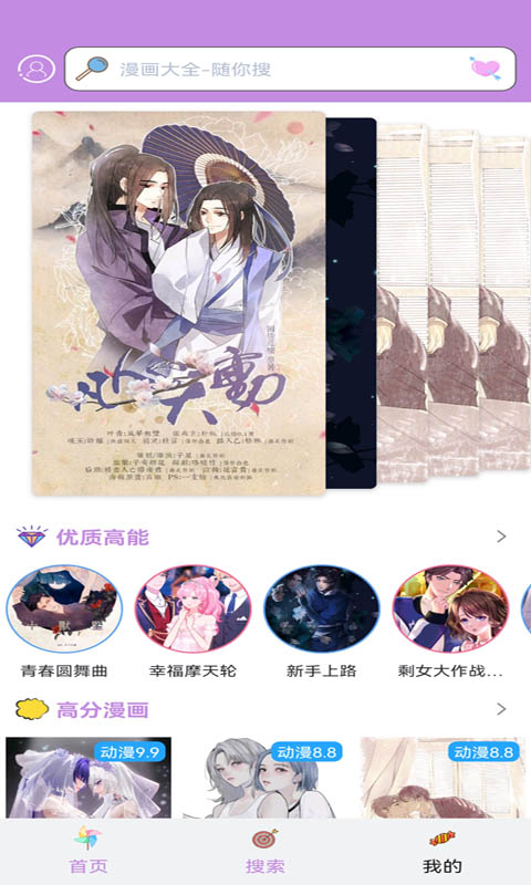 这款软件包括了免费和付费漫画,每周向用户们开放部分漫画资源,随心所欲畅读。超多作品上架到书架,保存历史浏览记录,同时阅读浏览清晰,不带有广告,界面清爽。