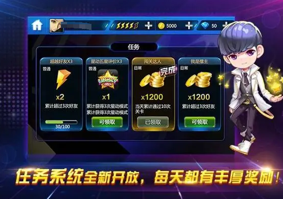 大家在游戏中还可以进行抽奖,有机会拥有丰厚的道具和金币以及钻石,如果喜欢钻石的话,那大家都可以通过小任务去领取了,随时随地都能听到新鲜的歌曲,免费畅玩游戏,大家还可以随时挑战自我,挑战好友,挑战全球各地的用户,可以进行速度调节,带来全新的体验,游戏里面还有主题曲的专题系列,可以让大家轻松玩耍。