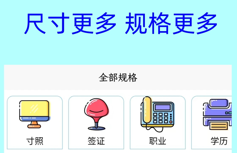 软件的操作是比较便捷的,里面拥有许多功能大家都是能使用的,像添加红白蓝底色,以及多种不同的其他基础底色都可一键进行切换,当然还有各类高级色调大家也都能解锁,包括自定义其中的规格以及尺寸等。