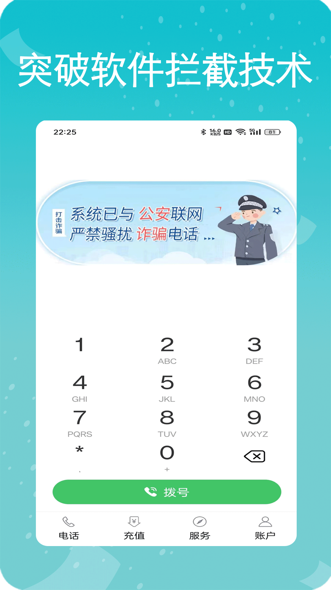 这款软件不需要安装,用户也能直接使用,拨打对方的电话。用户们在联网状态就能通话,不需要消耗电话费,只要消耗流量即可,保证通讯隐私和安全,还能屏蔽骚扰、推销类电话。