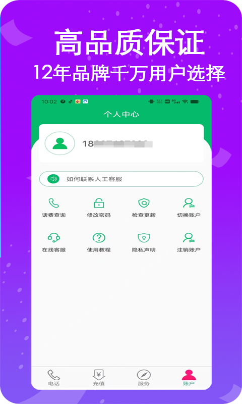 作为高品质网络电话,它采用了一卡多号模式,在隐藏主号情况下,使用虚拟副号拨出,从而保护用户隐私,实现绿色纯净高品质通话,避免被其他用户跟踪。
