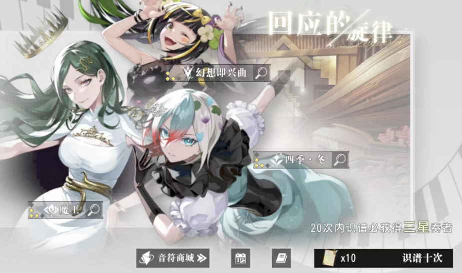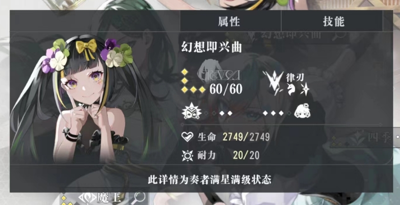 目前的三选一包含了魔王,四季冬和幻想即兴曲这三个奏者,她们在品质上不分伯仲,都是三星,不过属性与技能的构成还是有不小差异,其中生命最高的还要当属幻想即兴曲,不过她的技能多是纯粹的单体伤害,所以想快速推图的话选她不是最优解。
