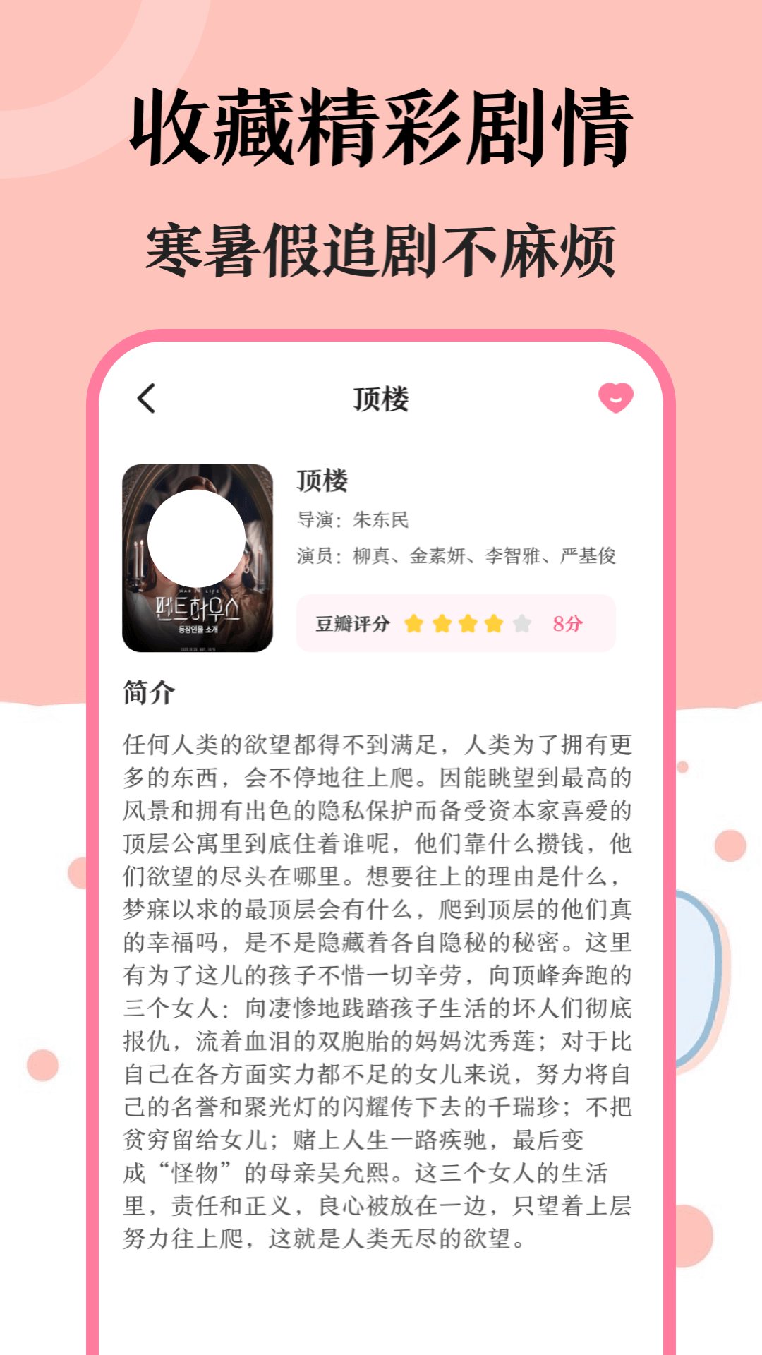 这款App提供了一个方便的平台,帮助你找到并观看各类韩剧。无论是最新的热门剧集,还是经典老剧,这里通通都有。更令人惊喜的是,你可以在应用内与其他韩剧迷们分享观后感,互相交流你对剧情的看法。这不仅仅是一个观剧的地方,更是一个社交平台,让你与同好们一起热烈讨论。