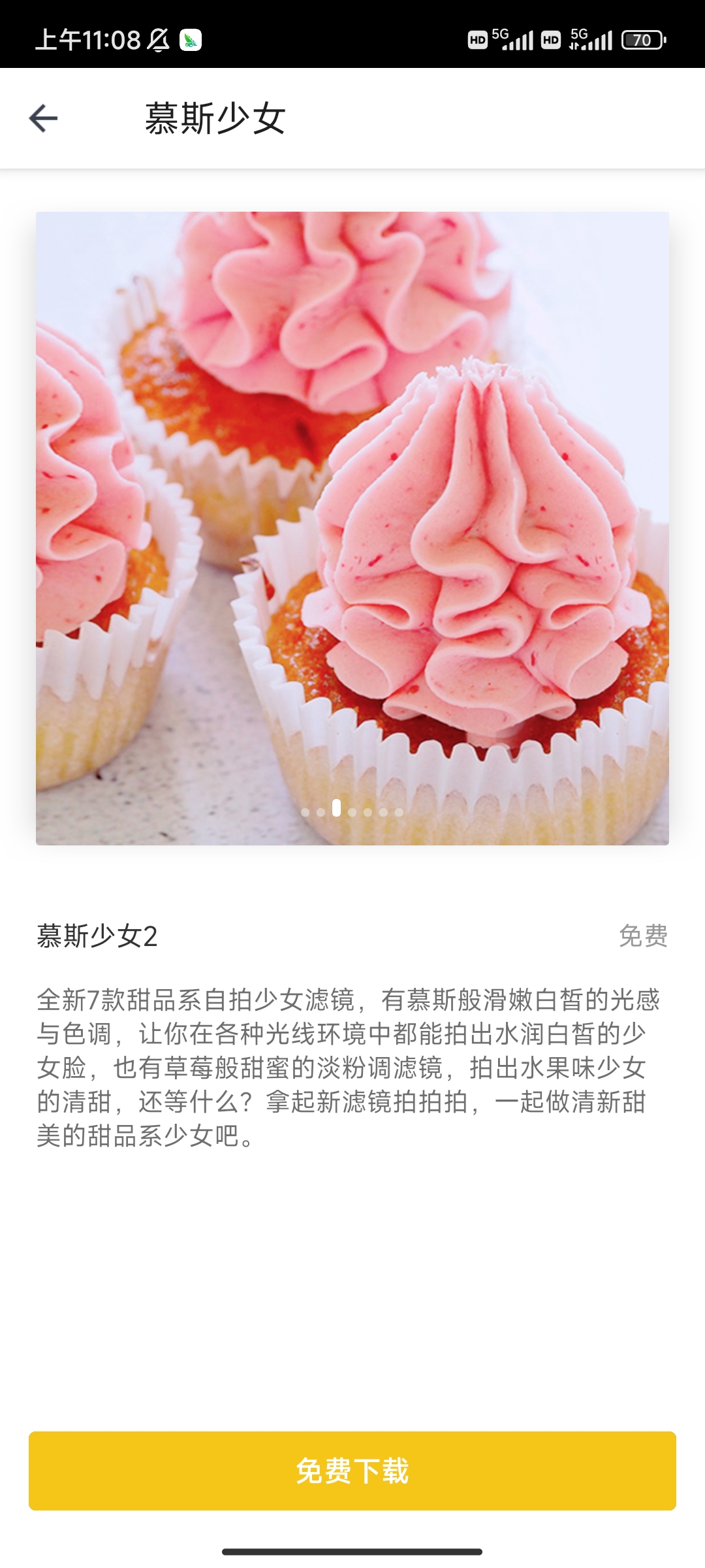 这款软件专注于人像拍摄人像,具有70 款专业美型,让你拍出来的人像美丽动人,新推出的视频精修功能可以让你拍出的视频更加有质感,一秒出片,方便快捷。