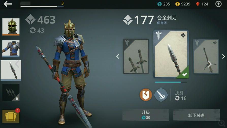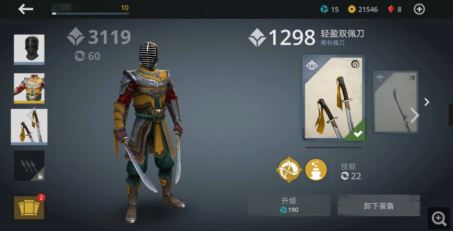 每个角色都有三个装备槽,可以分别装备头盔、盔甲和武器。每个装备都有对应的皮肤,可以在装备区点击装备图标进行切换。但需要注意的是皮肤只能与同类别的装备匹配,比如头盔只能换头盔的皮肤,不能换盔甲或武器的皮肤。而且皮肤会继承装备的等级和属性,但是会改变暗影技能和技能槽。因此暗影格斗三种的皮肤可不是单纯为了美观的哦,大家还要考虑羁绊、属性效果才能发挥皮肤的最大潜力。