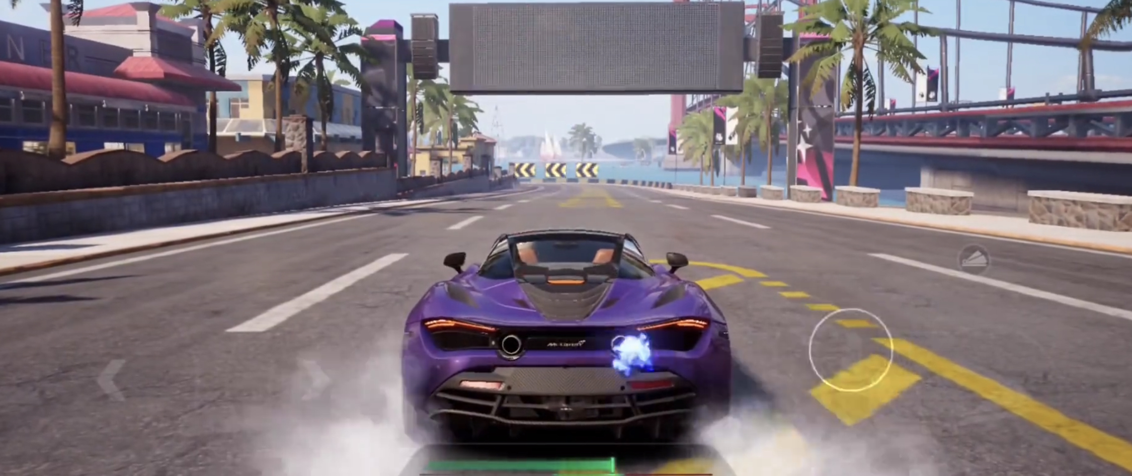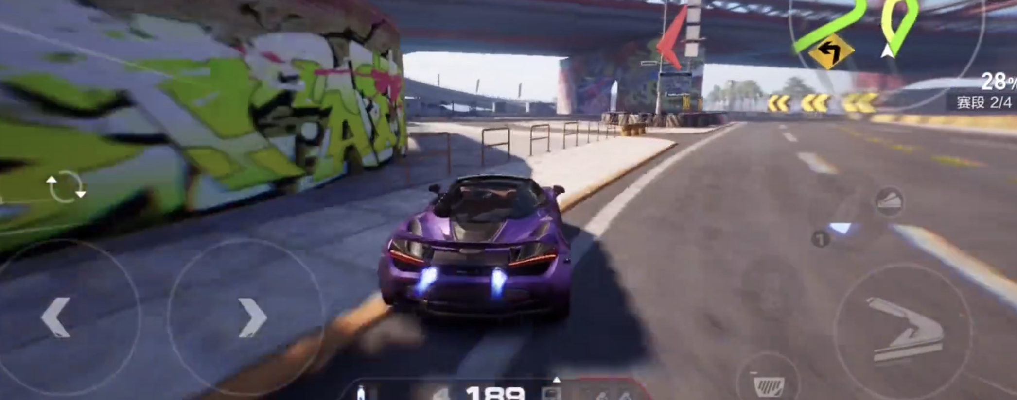 赛道的后半段需要玩家以最快的速度穿越卡门大桥的前面,这是一段直线距离,直线在赛道中算是比较简单的,难点在于要怎么达到最大速度。这里有个加速的技巧是当咱们从上一个赛道出来行驶到桥面以后,可以使用增压氮气来进行加速,然后稳定好车头进入桥面的加速带,踩油门以最快的速度进入跳板。不过在这里大家需要注意冲刺的距离,最好是在快要接近长加速带的时候再进行冲刺,这样才会更有把握。不过没有上加速带也不要紧,可以用落地提速和增压氮气可以在落地的时候最大的提升赛车的速度,帮助玩家快速过桥。