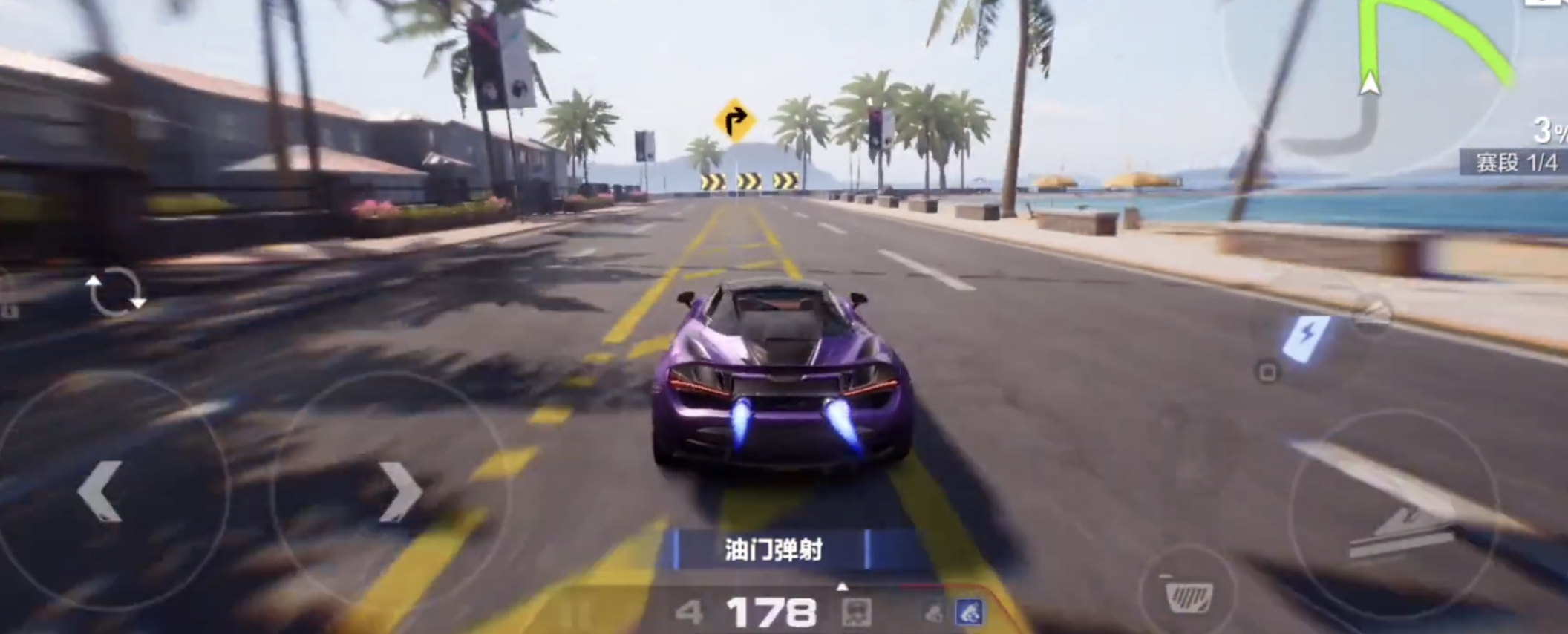不过小伙伴们需要注意,在高速状态下,需要将距离把控好,因为是连续弯道,所以咱们要预留更远的距离来衔接第二个弯道,而且是在漂移的状态下,这样才会避免过漂,但是连续过弯失败,落后于其他的赛车手。