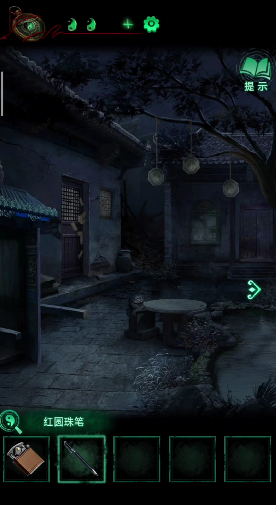 捡起地上的毛笔,查看墙上的画,接着回到古董屋将柜子上的四个瓶子调整与画作一样的风景,这时可获得一把钥匙,玩家就可以离开古董收藏室了。拿出手机观察院子石敢当上面的线索,这里的线索对应后院桌子上的解谜关卡,仔细观察可通关成功,并获得两个象棋,再次回到石敢当的位置,将象棋放在上面即可获得黑白棋子。