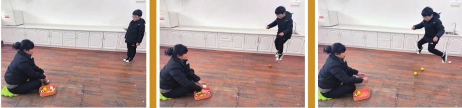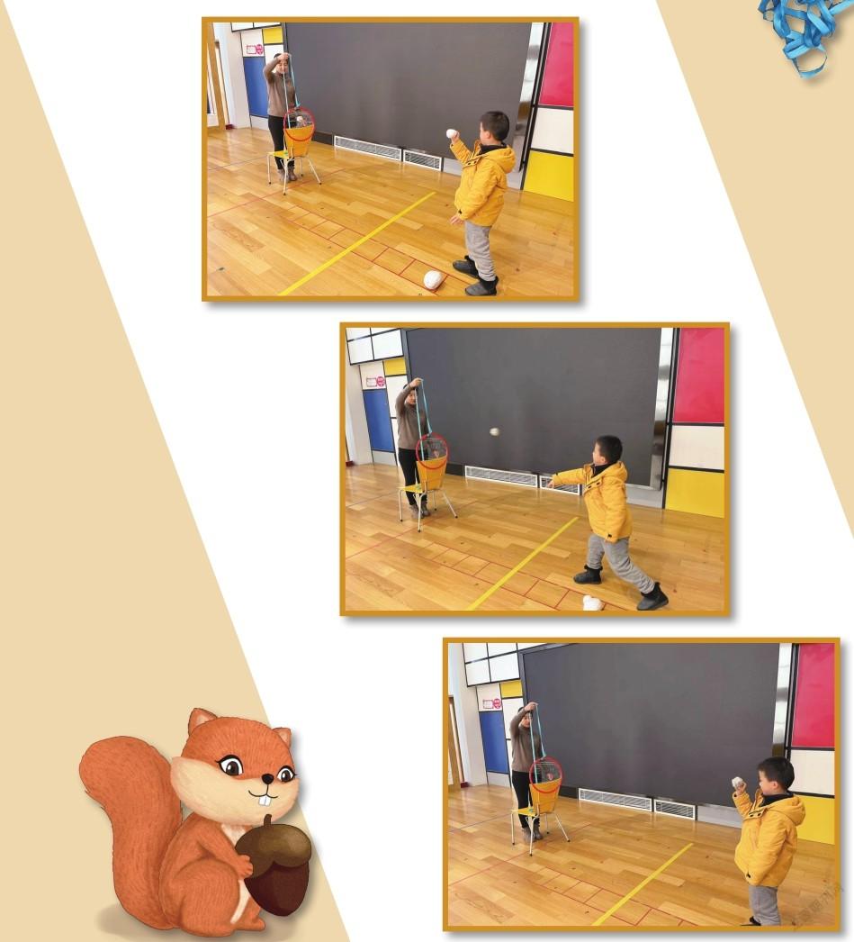 2.家长不断抛出小球,幼儿左右跳跃躲避。