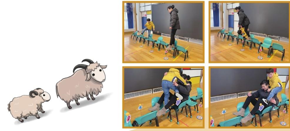 发展指向:锻炼幼儿的核心区力量及腿部力量。