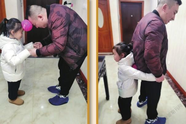 2.幼儿与妈妈面对面站立,爸爸在两人背上随机贴上一张数字背贴。