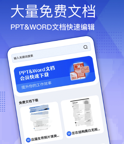 在这一个办公文档当中可进行文档管理,同时也可进行PPT文稿的制作和Excel表格的制作,对于想要完成简历的人来说,当然也可根据自己的需求来制作出来,它能对字体进行编辑,也能对文档进行修饰。没有任何经验的人,在这一款手机软件当中都能正确的操作,是工作当中以及找工作时必备的。