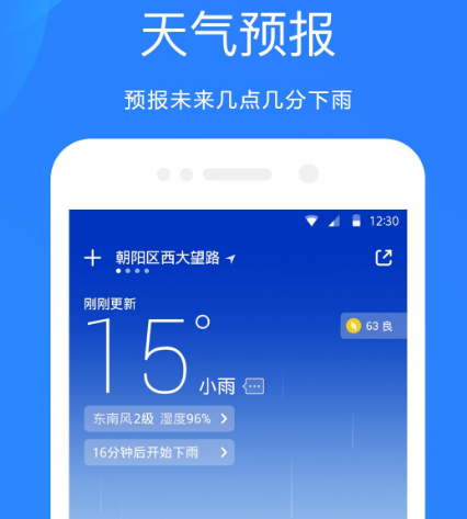通过此软件的名字就可知道,它主要就是能进行天气预报显示的,不仅预报的精准度特别的高,在有刮风下雨恶劣天气的时候,也会提前的显示出来。