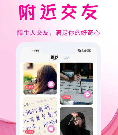 想要进行聊天约会,交友的话,此软件能提供非常优质的圈子,在交友的时候可更加的方便,尤其是想要找到男女朋友的话,更容易遇到让自己心动的人,如果不想找一个离自己特别远的男朋友或者是女朋友,里边的附近交友就提供的是离自己比较近的人群。