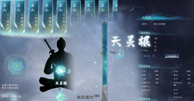 如果玩家选择了与目标属性相符的选项,那么出现真灵根的概率大约在47%-50%之间,出现天灵根的概率大约在70%-80%之间。也就是说,玩家只需要刷出几次真灵根,就有很大的机会刷出天灵根。而且,天灵根的百分比也会随机变化,最高可以达到80%,这是最理想的结果。