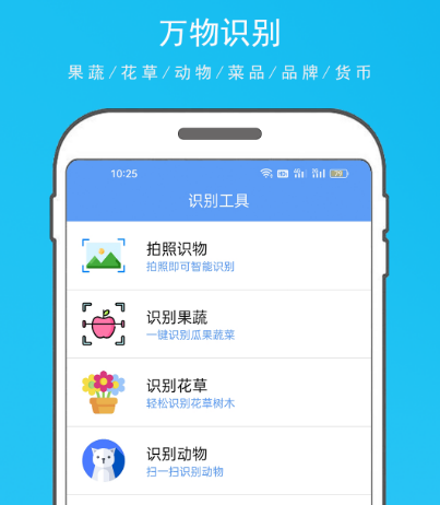 生活当中的物品多种多样,难免会有一些自己不认识的,比如此软件它就是一个非常专业的识别工具,可根据自己要识别的物品类型来选择其中包括识别花草、识别货币、识别名称、菜品等等。想要识别的应有尽有,在识别植物水果的时候,也可显示出相对应的小百科,内容非常的丰富。