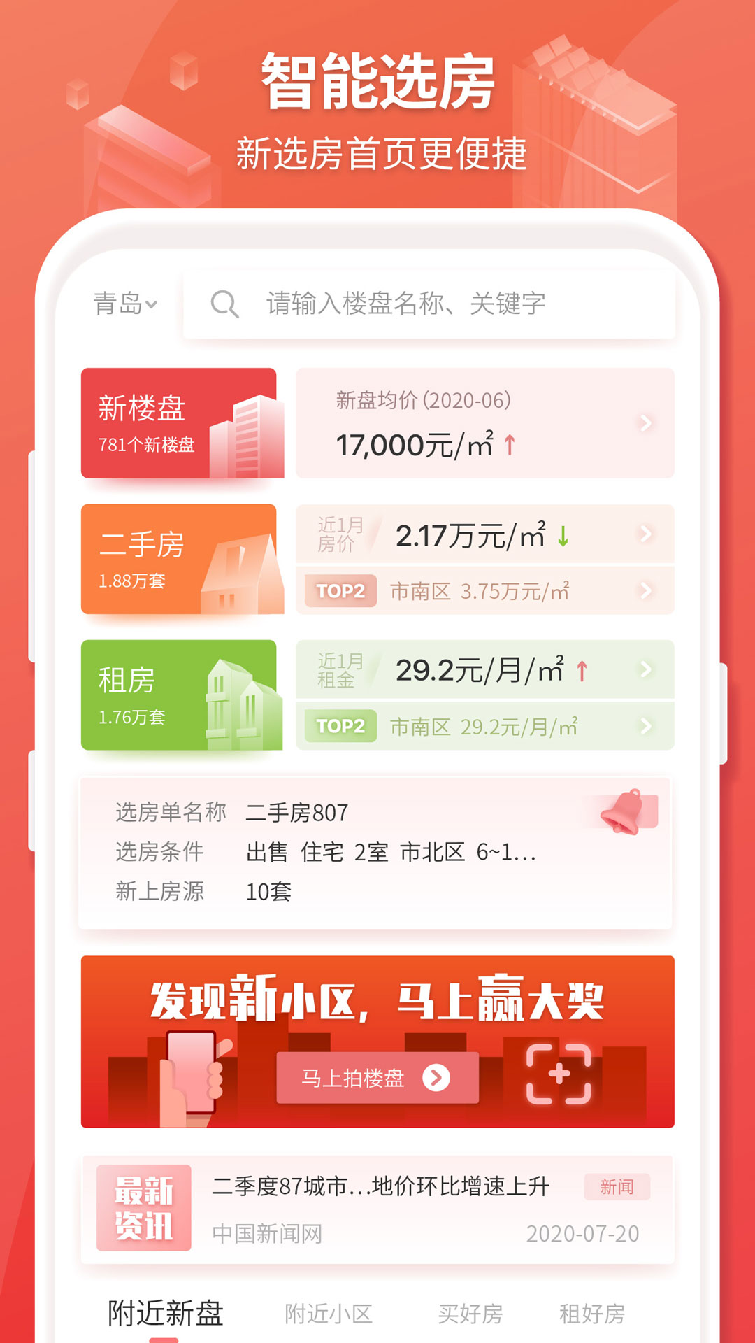 这是一款辅助。新手线上买房的工具,这款APP能够提供专业的买房资讯,让大家了解地方的房产项目变动。包括新开的楼盘信息,二手房源的信息都可以在平台上搜索得到,而且各种房源信息每天都在更新,随时为大家提供精准的房屋购买信息。