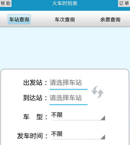 在该软件里既能看到火车的相关数据,更是上百万用户出行的时候都会选择的。它会与官方同步更新信息,所以在订票的时候不需要注册轻松就能搞定。比如在查询的时候即可查询一下车次以及余票,还能查询车站,完成以后它能显示相关的订单,在乘坐火车的时候非常的便捷。