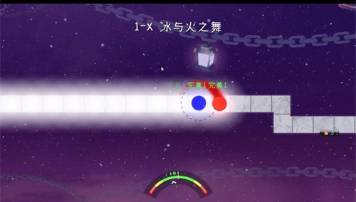 1-X 冰与火之舞:这是游戏的第一个关卡,也是最简单的一个。玩家只需要控制两个球体在水平方向上移动,避开黑色的方块,收集所有的星星。这个关卡的音乐是一首轻快的电子音乐,给玩家一个温暖的开场。