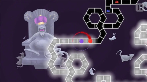7-X 旋转制胜:这个关卡的特点是轨道会随着音乐节奏进行旋转,玩家需要控制两个球体在不同方向的轨道上移动和旋转,同时注意黑色方块和白色方块的位置。这个关卡的音乐是一首带有旋律和节奏变化的电子音乐,让玩家感受到旋转的乐趣。