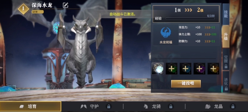 目前的养成神兽中最受大家欢迎的就是各种种类的龙,毕竟这款游戏中的龙就是其中的主角,大家从一开始变成新手进入游戏的时候就可以看到引导告诉大家的各种驯龙方法,只要大家在上面能够完成对应的等级,就可以去驯服跟自己等级差不多的龙,每一条龙孵化成功之后大家都是可以在孵化石里面获取的,而且在外观上面幼年的龙跟成年的龙也完全不一样,大家可以在上面查看进化之后的外观效果。