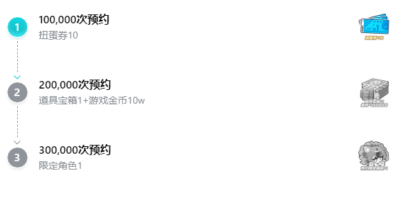 最后一个预约奖励则是需要总预约人数达到30万才可以领域一个游戏中的【限定角色】1个,不过目前暂时没有公布这个限定角色具体是谁,大家还是可以浅浅的期待一下哦!