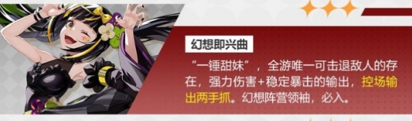 幻想即兴曲:这个角色外观上面很美没错,大家在上面也可以带来强力的输出,在输出之外大家是可以稳定带来高暴击效果的,所以缺少控场角色大家就可以用这个角色,而且输出的数值也会给大家带来惊喜。
