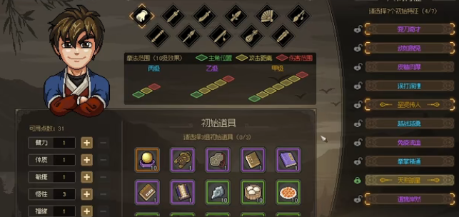 建议可以选择天煞孤星 万里独行,剑,这一方面就没有太多的限制性,比如可以选择加满敏捷,但是福缘这一方面就不需要考虑其他的,就没有固定的选择。如果想要提升个人的实力,也可以增加一些悟性,当在探索过程中可能就会提升个人的实力。当玩家在一开始操作时,会觉得有一些磨叽,但不要过于的忽视目标,就在于把所有的门派全部都加一遍,然后走遍每一个都可以走的地方,在这一方面就没有什么需要注意的地方,总之玩家就需要把所有的成就全部的走一遍,基本上就可以白白的得到许多的成就。
