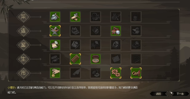 另外在操作时建议的项目也有很多,比如可以采矿,可以鉴定字画,古董,可以打造武器,在生存类这一方面必须要满足所有的探索。进入到2周目,为了有机会拿到金色枪法,不妨就准备好,道貌岸然,当然不拿也没有太多的关系,结合实际情况即可。要想拿到金色刀法,可以考虑万里独行,不过就算没有的话也没有太多的问题,其他的这些都没有所谓,只是玩家会发现只锁定一个天赋,可能会比较难受。