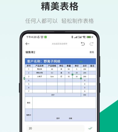 此软件主要就是能制作表格的,即使没有任何经验的人都能轻松的完成表格的制作,具备很多的优势。比如使用门槛特别的低,这样就能更好的在制作表格的时候节约时间,还提供自动计算的功能。如果自己所制作的图表中需要有一些数据的话,不需要自己计算,表格能操作计算。