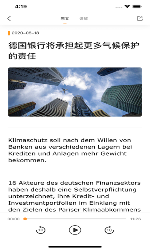 德语说这是一款专业的了解德国热门热点信息以及帮助我们学习德语进行德语翻译的培训软件,所以综合性的工具也能让我们解决多个问题,用户能够在这款软件上解决自己的烦恼,并且免费的听读工具也能让我们在没有办法阅读的情况下,直接点击小喇叭,就能帮助我们阅读德语或者汉语的内容,能够让我们使用的场景更加丰富。
