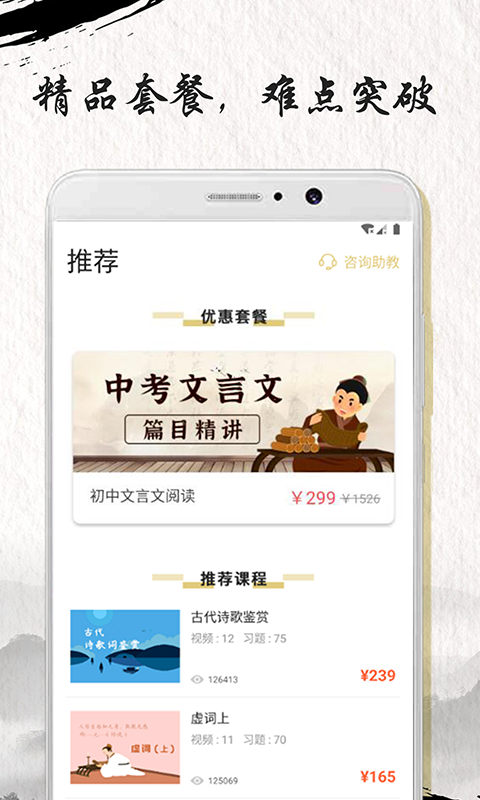 中考文言文精讲是一款适合于文言文素养不是很高的用户们来学习使用,在这款软件上大家不仅可以查询到翻译功能,它还提供了文言文词典和学习资料,让我们学习的过程不那么没目标,可以帮助想要深入研究文言文的用户开展针对性的学习。