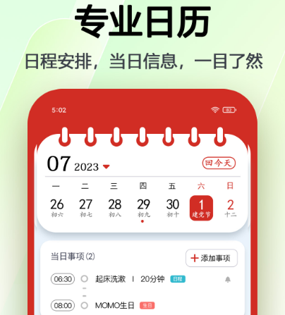 这是几亿人都在使用的软件,非常符合中国人对日历的需求,除了有农历之外,还有农历、黄历、天气、生日提醒、倒计时等齐全的生活助手,是众多日历app中的首选产品。有提醒功能,比如会议代办、生日纪念日、日程管理等等,只要设置节日即可进行倒计时提醒,还能查询长达40日的天气预报以及空气污染指数。
