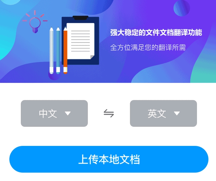 它是款功能强大的翻译软件,为大家准备了许多不同的翻译功能,像文档的翻译就是其中之一,用户直接去上传就能快速的进行翻译,同时里面的内容准确率也是非常的高,能让大家获得一个良好的体验。