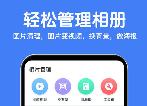 软件不仅是带有强大的图片查看功能,更是能够帮助我们快速清理掉不需要的图片来为手机“瘦身”。另外还提供了多个图片转化为电子相册视频、快速制作海报以及抠图换背景等功能。