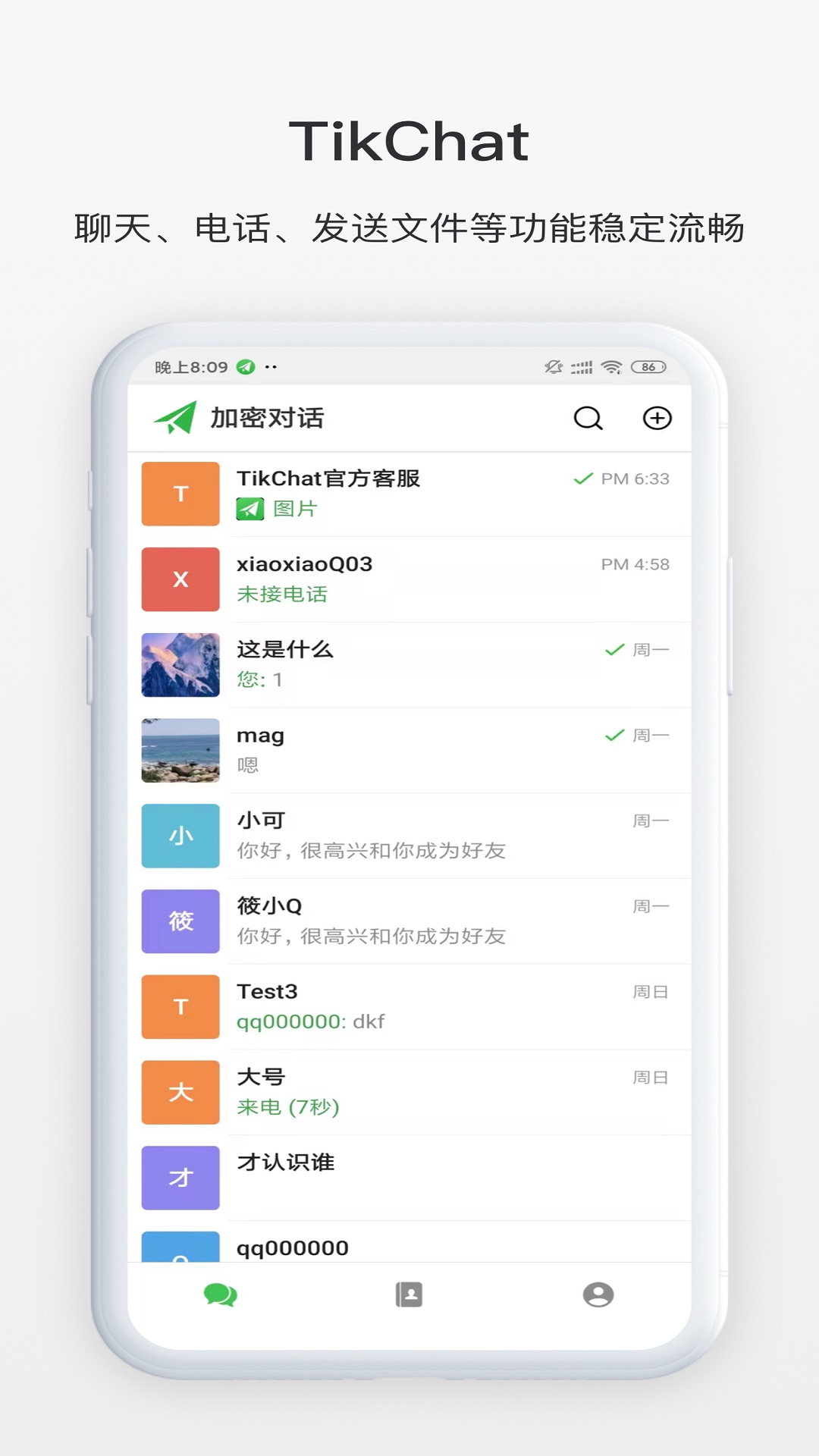 TikChat这款软件是一款非常注重隐私安全加密的聊天软件,在这款软件上我们能够有效地避免第三方软件的窃听,所以支持一对一聊天能够让我们享受安全且私密的沟通交流场景,同时在这款软件上我们能够对于这款软件添加相应的密码锁,能够让我们每一次打开App都需要输入正确密码才能查看相应的聊天内容,并且在这个软件上大家能够对于自己聊天的内容进行快速的删除。