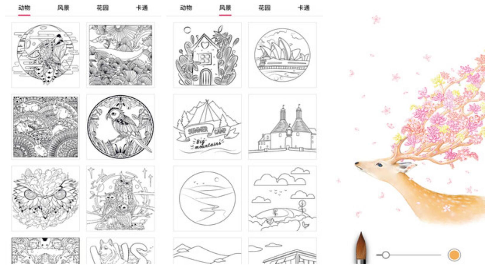 软件内引入了数十种高仿真的画笔,并且都经过了平台细致地调校,让你拥有在纸上绘画的体验。除了能够自由创作外,大家还可以在涂色模板上,进行趣味解压地填色。