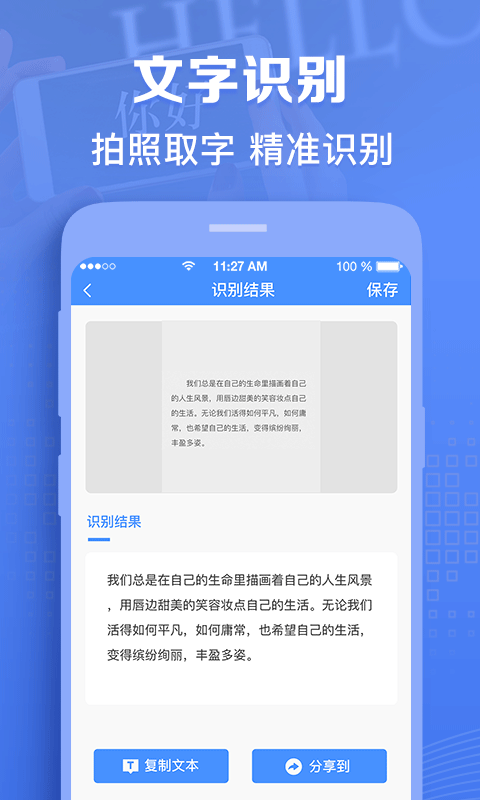 这是一个万能工具,可以把图片里的文字变成文字,无论是纸上的东西、标志牌还是图片文件,都可以轻松处理,帮助用户更快地识别文字。