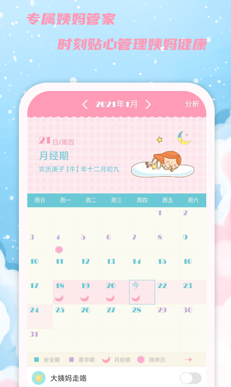 针对女性的月经期,排卵期等各项数据都是有着明确的记录和分析的,让你操作起来一点也不繁琐,从而让你的身体更加的健康。