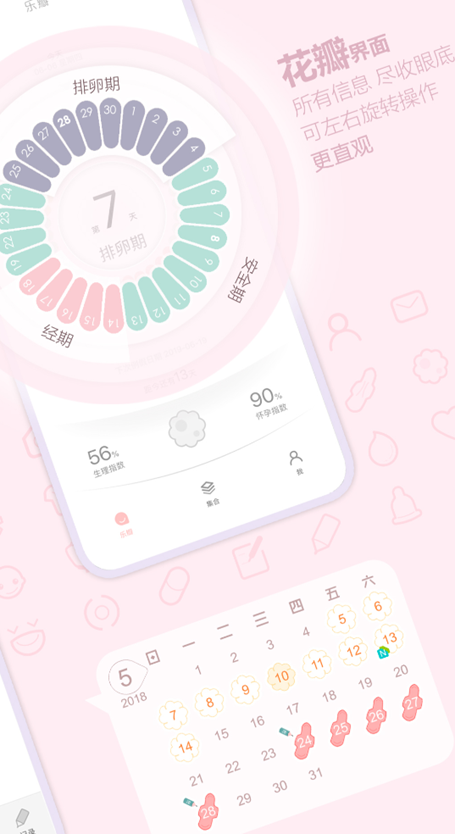 多功能的经期预测应用软件,另外你还可以通过它去记录姨妈的疼痛程度,心情,药物,以及各方面的信息,继而帮你追踪更多的状态信息。