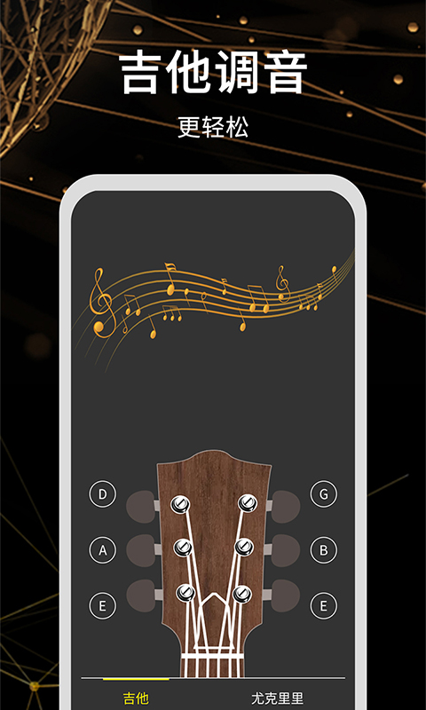 软件界面简约,提供乐器、A4频率等音频校准,实时调整贝斯、小提琴、吉他、尤克里里等音调,更改弦乐、打击乐器等音调,通过定音、校音两种模式工作。