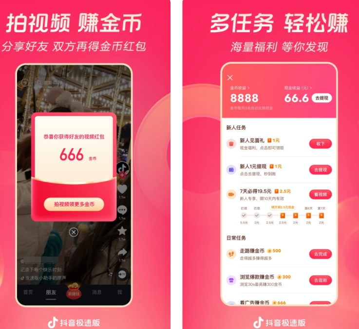这款软件有众多搞笑幽默的短视频,可以边刷视频边做赏金活动的任务,领取看视频的奖励。利用视频定位功能,还能结交同城朋友。